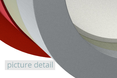 Surface/Material: coated, coloured, matt, metallic, semi-glossy,