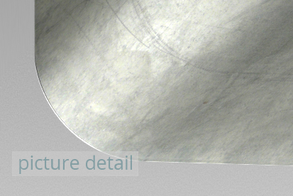 Material: raw steel, galvanized, stain finish, grainy front face.