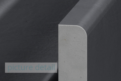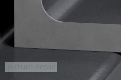 Surface/Material: dark grey, raw steel, semi-glossy,