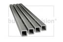 Four square hollow sections H40 x L1000 x T5,0 mm in front of a white background, diagonal arranged, complete view.